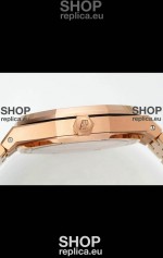 18K Rose Gold Plating on 904L Solid Stainless Steel Strap with smooth edges with AP Folding Clasp complete with AP Markings and Engravings