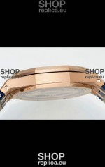 18K Rose Gold Plating on 904L Solid Stainless Steel Case and Bezel. Open Case Back with Stainless Steel Cover