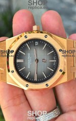 Yellow Gold Plating on 904L Brushed Stainless Steel Casing with Audemars Piguet Markings and Engravings