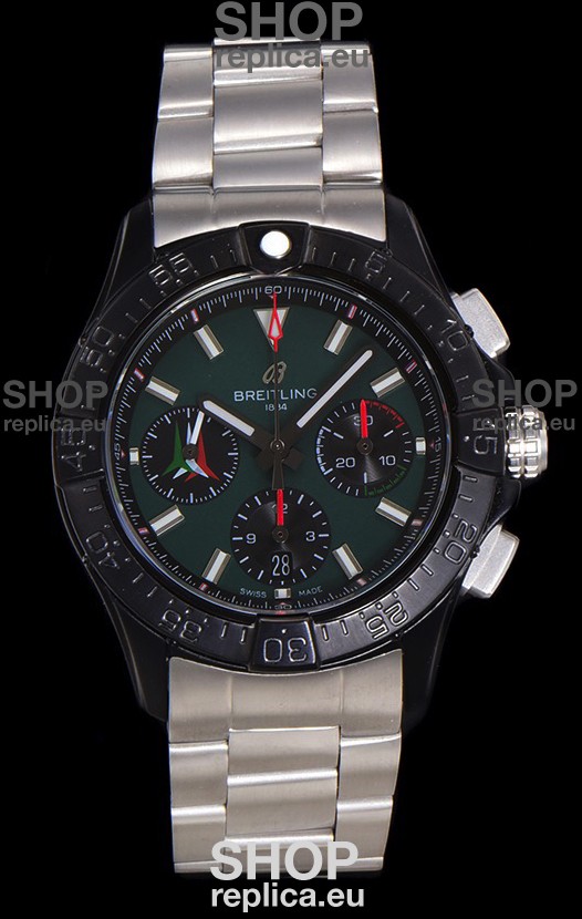 DLC Coating on 904L Steel Case complete with Breitling markings and Details as per the originals.
