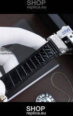 Hybrid Leather/Rubber Strap with Stainless Steel Folding Clasp complete with Hublot Markings and Engravings.