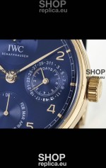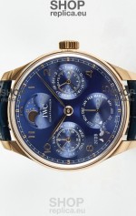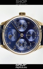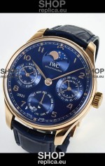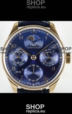IWC Super Clone Portuguese Perpetual Calendar Rose Gold Blue Dial Replica Watch