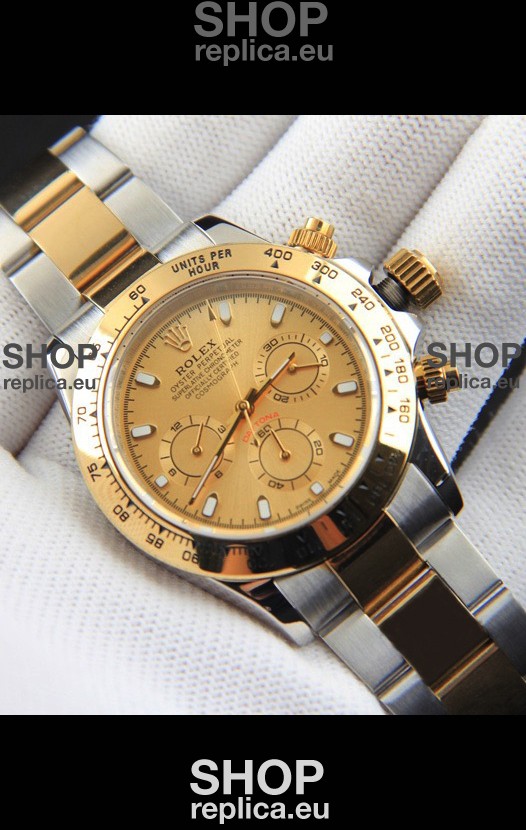 Rolex Daytona Japanese Movement Two Tone Gold Casing Watch in Gold Dial