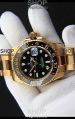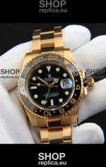 Rolex GMT Masters II Rose Gold Plating Japanese Replica Watch Black Dial