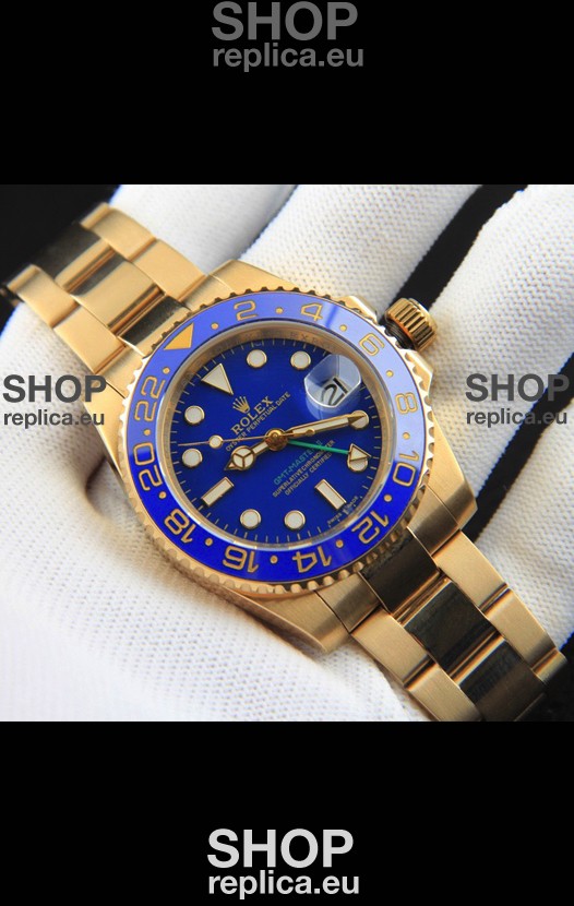 Rolex GMT Masters II Rose Gold Plating Japanese Replica Watch Blue Dial