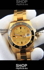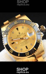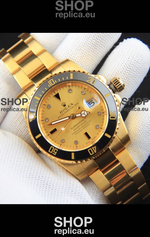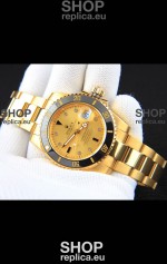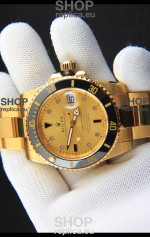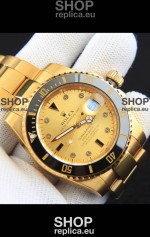 Rolex Submariner Japanese Replica Watch in Yellow Gold Casing Black Bezel