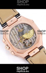 18K Rose Gold Plating on 904L Solid Stainless Steel Case with Open Case Back Cover in Steel.