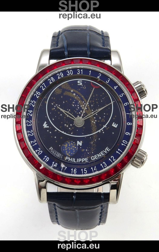 Patek Philippe Grand Complications 6102 Blue Dial Red Diamonds Swiss Replica Watch