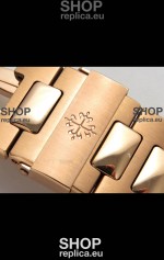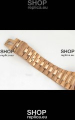 18K Rose Gold Plating on 904L Solid Stainless Steel Strap linked with Screws with Folding Patek Philippe Clasp.