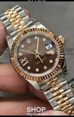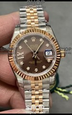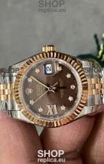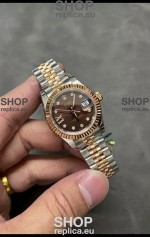 Rolex Datejust Super Clone Brown Dial 2 Tone Rose Gold Watch 28MM