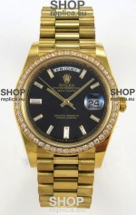 Rolex Day Date Super Clone Black Dial 40MM 220 Grams Swiss Replica watch
