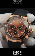 Rolex Daytona Japanese Movement Gold Casing Replica Watch in Brown Dial