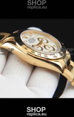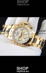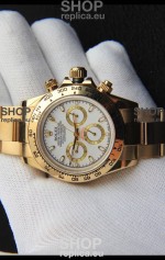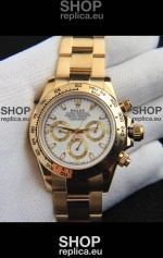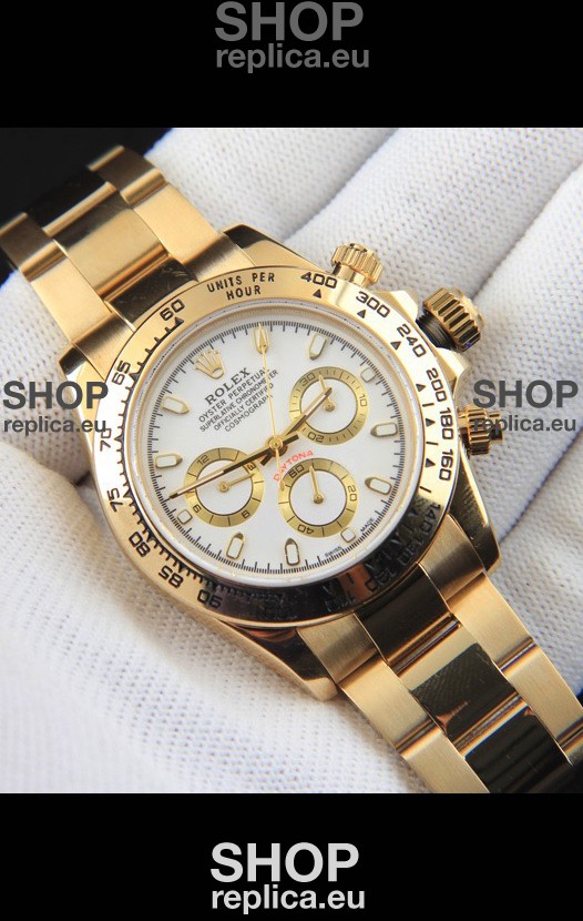 Rolex Daytona Japanese Movement Gold Casing Replica Watch in White Dial