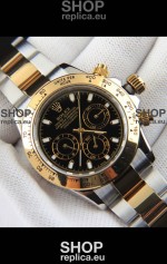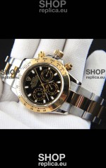 Rolex Daytona Japanese Movement Two Tone Gold Casing Watch in Black Dial