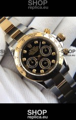Rolex Daytona Japanese Movement Two Tone Gold Casing Watch in Black Dial