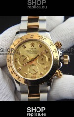 Rolex Daytona Japanese Movement Two Tone Gold Casing Watch in Gold Dial