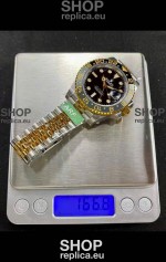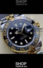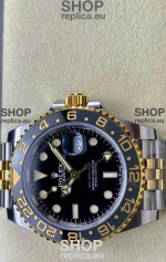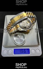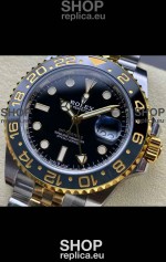 Two Tone Yellow Gold Plating 904L Stainless Steel Case as per the Orginal with Metallic Black/Blue Ceramic Inserts.