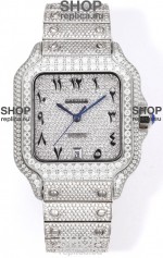 Cartier "Santos De Cartier" Stainless Steel W/ Diamonds Arabic Dial 1:1 Mirror Replica - 40MM - Genuine Diamonds