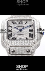 Cartier "Santos De Cartier" Stainless Steel W/ Diamonds Roman Dial 1:1 Mirror Replica - 40MM - Genuine Diamonds