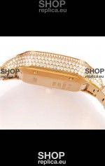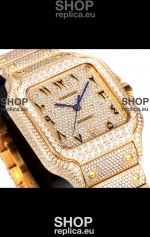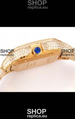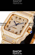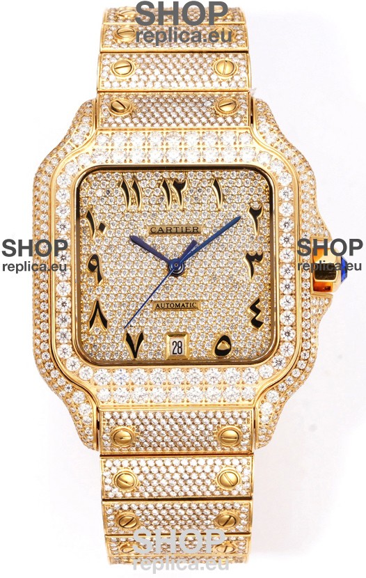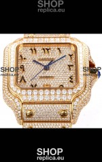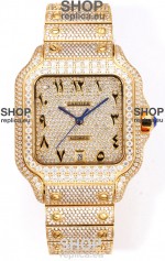 Cartier "Santos De Cartier" Yellow Gold W/ Diamonds Arabic Dial 1:1 Mirror Replica - 40MM - Genuine Diamonds