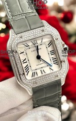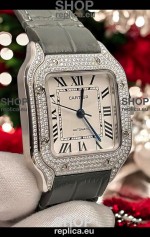 Santos De Cartier Watch in White Dial 39.50MM MOSSANITES Paved Bezel Swiss Replica Watch