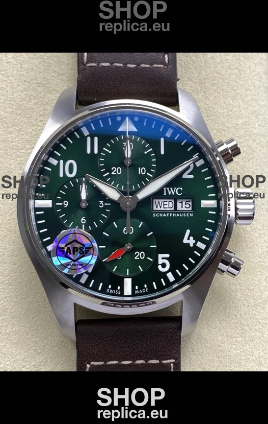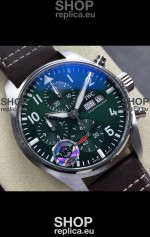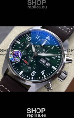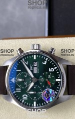 IWC Super Clone Pilot Chronograph Edition Green Dial Leather Swiss Replica Watch
