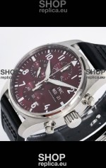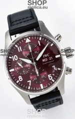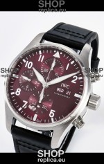 IWC Super Clone Pilot Chronograph Edition Red Dial Leather Swiss Replica Watch