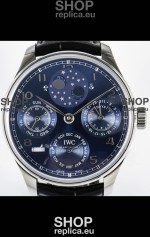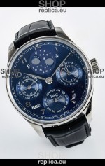 IWC Super Clone Portuguese Perpetual Calendar Stainless Steel Blue Dial Replica Watch