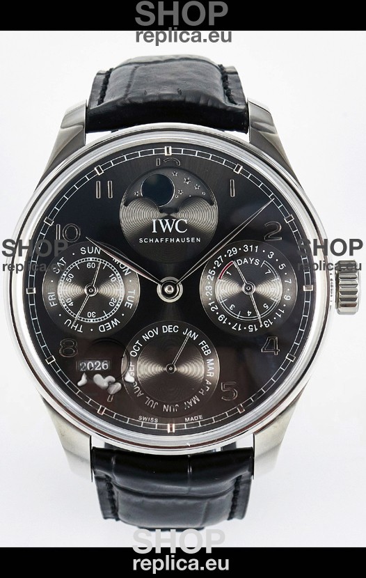 IWC Super Clone Portuguese Perpetual Calendar Steel Case Grey Dial Replica Watch