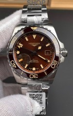 Longines HydroConquest GMT 1:1 Mirror Swiss Replica Watch in Brown Dial Steel Strap