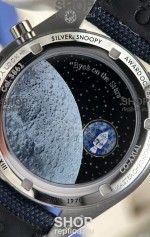 The Globe Located at the rear would rotate and complete one revolution per Minute, the Snoopy on Spaceship would rotate counter clockwise in conjunction to the Chronograph second hand once the Chronograph feature is activated.