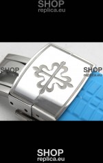 Curved Rubber Strap with Steel Folding Clasp complete with Patek Philippe Markings. A Highly Updated Clasps for this series with much more accurate markings/engravings.
