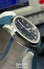 Genuine Swiss 9015 Movement assembled to Resemble the Authentic Patek Philippe PP 240 Calibre Style Movement. Updated Rotor, Bridged and Engravings on Movement with Rose Gold Plated Patek Philippe Stamped Rotor