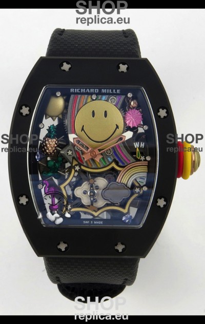 Richard Mille Super Clone RM088 Smiley Tourbillon Black Ceramic Rubber Strap Watch