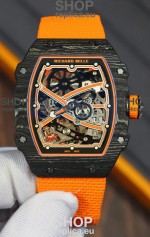 Richard Mille Super Clone RM67-02 Black Carbon TPT 37 Grams Watch Orange Strap