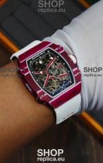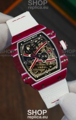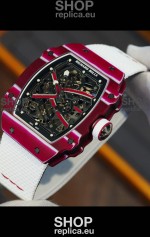 Richard Mille Super Clone RM67-02 Mutaz Barshim Red Carbon TPT 37 Grams Watch White Strap