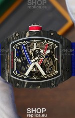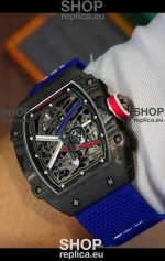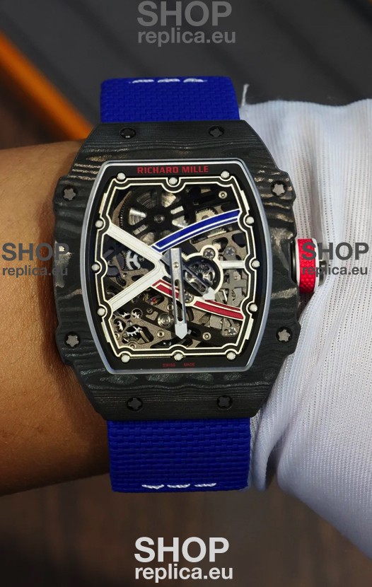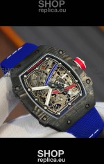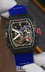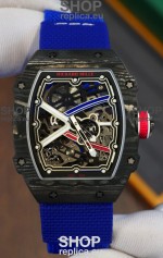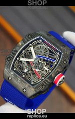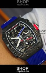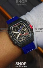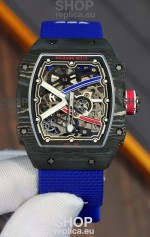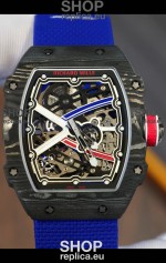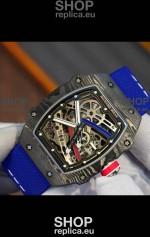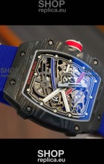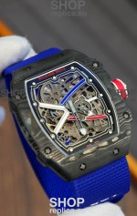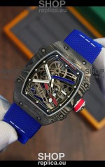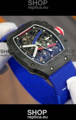Richard Mille Super Clone RM67-02 Sebastien Ogier Black Carbon TPT 37 Grams Watch Blue Strap